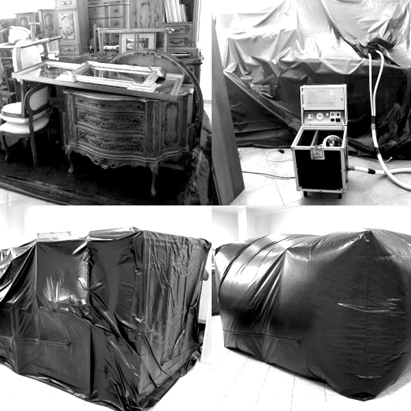 Il trattamento anossico priva i tarli dell’ossigeno necessario per sopravvivere, collocando i mobili o gli oggetti infestati in una camera sigillata dove l’aria viene sostituita con anidride carbonica, un gas completamente naturale. Questo processo elimina tutti gli stadi vitali dei tarli, comprese le uova.